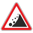 Дорожный знак 1.28 «Падение камней» (металл 0,8 мм, II типоразмер: сторона 900 мм, С/О пленка: тип А коммерческая)