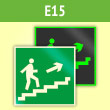 Знак E15 «Направление к эвакуационному выходу по лестнице вверх (правосторонний)» (фотолюминесцентная пленка ГОСТ 34428-2018, 200х200 мм)
