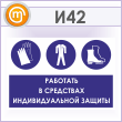 Знак «Работать в средствах индивидуальной защиты», И42 (металл, 900х600 мм)
