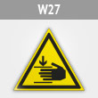 Знак W27 «Осторожно! возможно травмирование рук» (металл, сторона 200 мм)