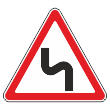 Дорожный знак 1.12.2 «Опасные повороты с первым поворотом налево» (металл 0,8 мм, II типоразмер: сторона 900 мм, С/О пленка: тип Б высокоинтенсивная)