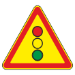 Дорожный знак 1.8 «Светофорное регулирование» (временный) (металл 0,8 мм, II типоразмер: сторона 900 мм, С/О пленка: тип Б высокоинтенсивная)