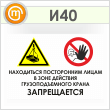 Знак «Находиться посторонним лицам в зоне действия грузоподъемного крана запрещается», И40 (пленка, 900х600 мм)