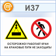 Знак «Осторожно! Работает кран. На крановые пути не заходить!», И37 (пластик, 900х600 мм)
