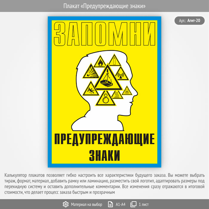 Плакат «Предупреждающие знаки» (Агит-20, 1 лист) в Омске купить