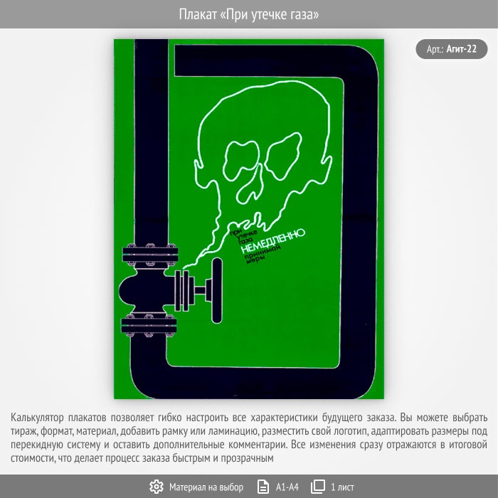 Плакат «При утечке газа» (Агит-22, 1 лист) в Омске купить