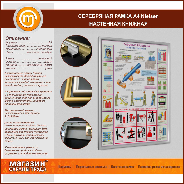 Багетная настенная рамка «Nielsen» А4 формата, книжная, матовое серебро в Омске купить