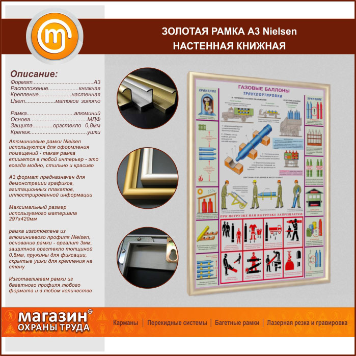 Багетная настенная рамка «Nielsen» А3 формата, книжная, матовое золото в Омске купить