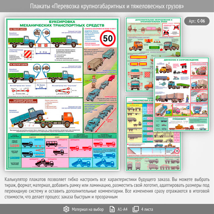 Плакаты «Перевозка крупногабаритных и тяжеловесных грузов» (С-06, 4 листа) в Омске купить