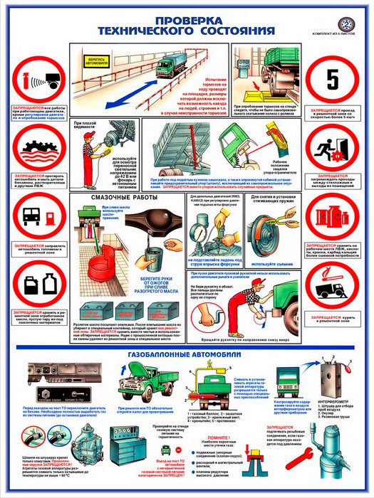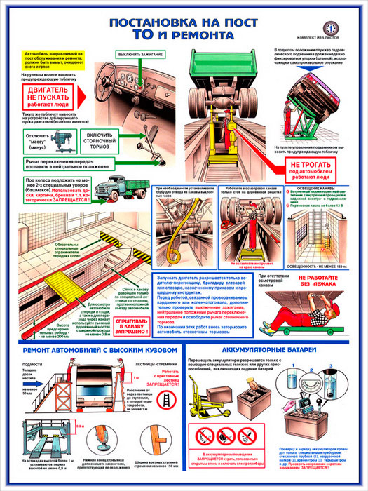 Плакат «Техника безопасности при ремонте автомобилей» (С-02, ламинированная бумага, А2, 5 листов) в Омске купить