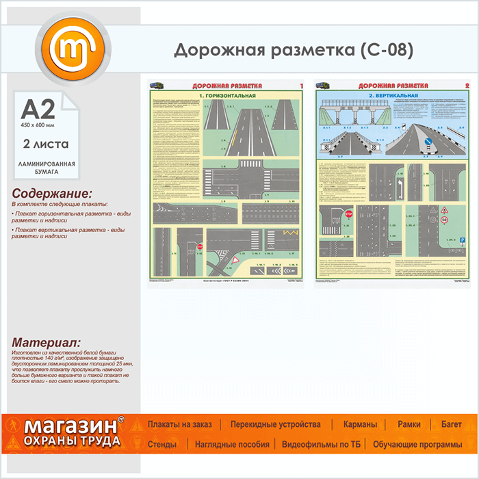 Плакаты «Дорожная разметка» (С-08, ламинированная бумага, А2, 2 листа) в Омске купить