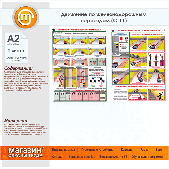 Плакаты «Движение по железнодорожным переездам» (С-11, ламинированная бумага, А2, 2 листа) в Омске купить