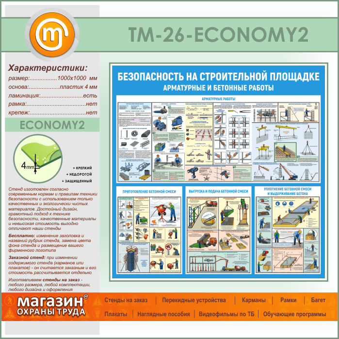 Стенд «Безопасность на строительной площадке. Арматурные и бетонные работы» (TM-26-ECONOMY2) в Омске купить