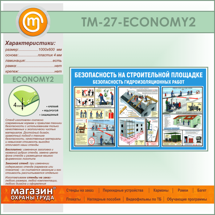 Стенд «Безопасность на строительной площадке. Безопасность гидроизоляционных работ» (TM-27-ECONOMY2) в Омске купить