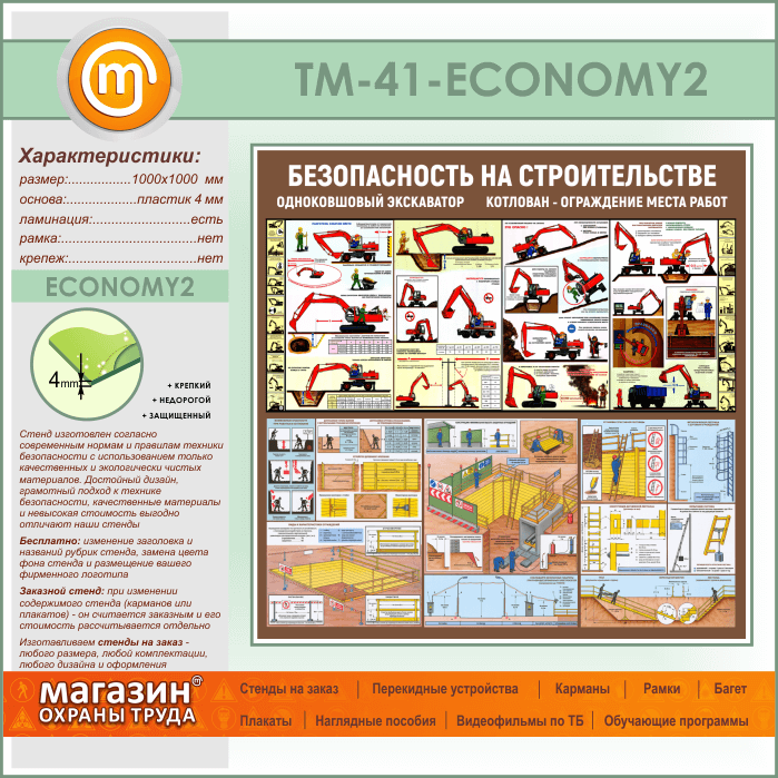 Стенд «Безопасность земляных работ. Экскаватор, котлован» (TM-41-ECONOMY2) в Омске купить