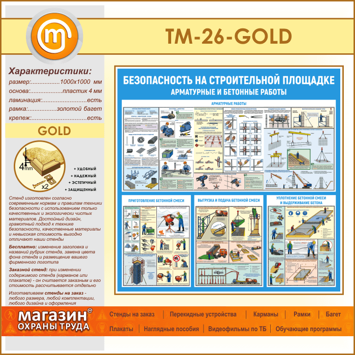Стенд «Безопасность на строительной площадке. Арматурные и бетонные работы» (TM-26-GOLD) в Омске купить