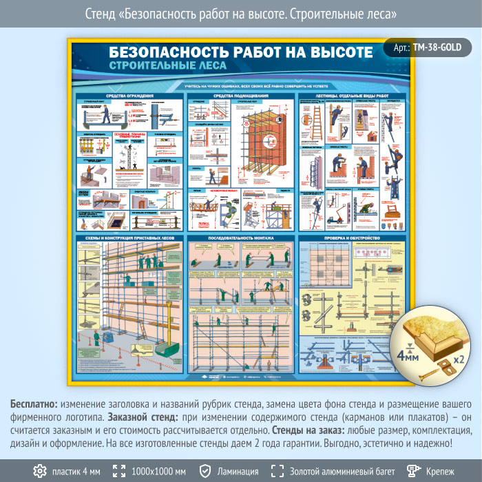 Стенд «Безопасность работ на высоте. Строительные леса» (TM-38-GOLD) в Омске купить
