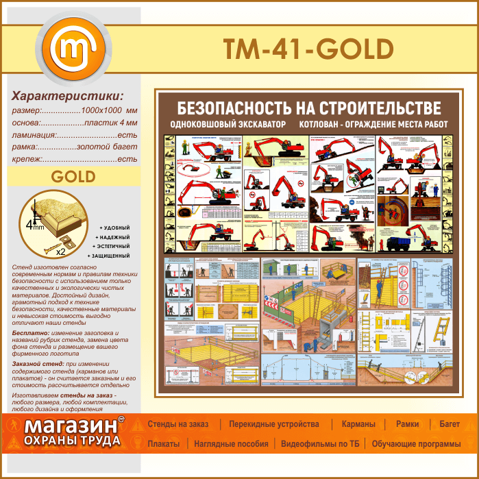 Стенд «Безопасность земляных работ. Экскаватор, котлован» (TM-41-GOLD) в Омске купить