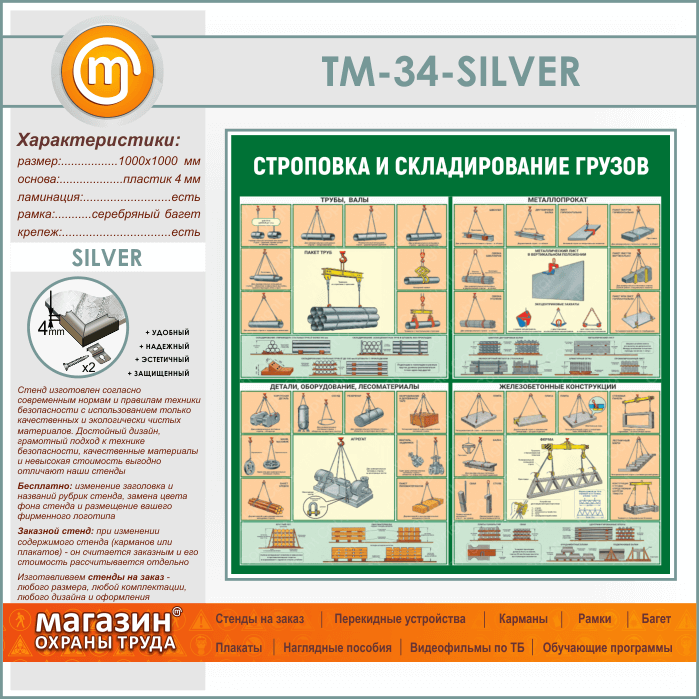 Стенд «Строповка и складирование грузов» (TM-34-SILVER) в Омске купить