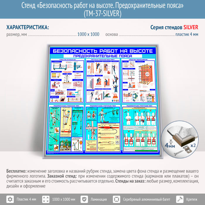 Стенд «Безопасность работ на высоте. Предохранительные пояса» (TM-37-SILVER) в Омске купить