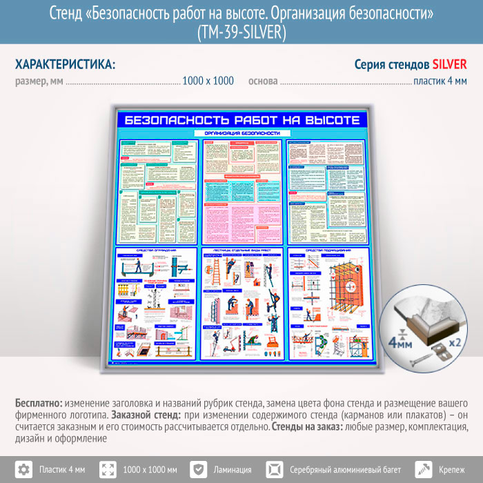 Стенд «Безопасность работ на высоте. Организация безопасности» (TM-39-SILVER) в Омске купить