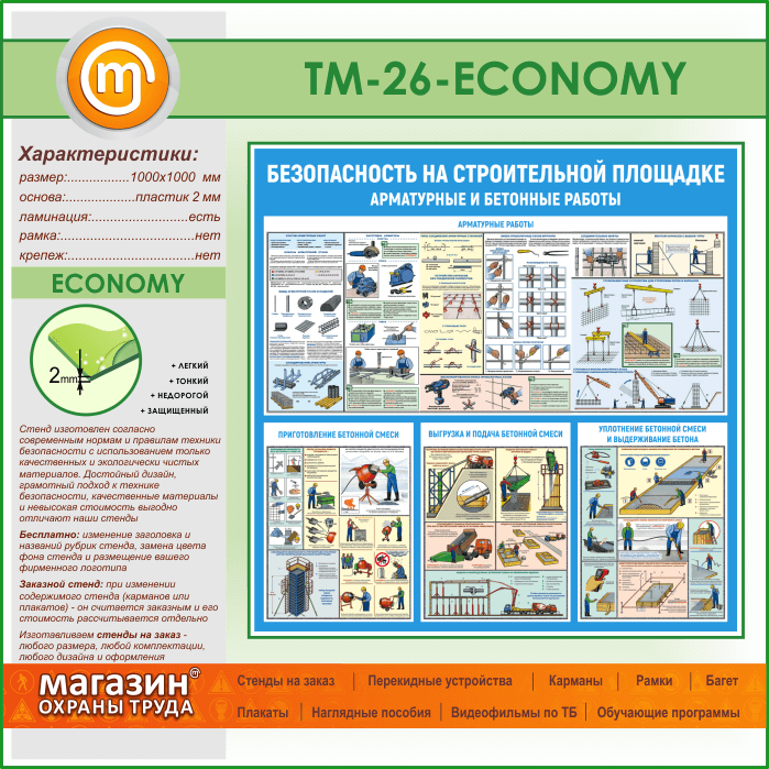 Стенд «Безопасность на строительной площадке. Арматурные и бетонные работы» (TM-26-ECONOMY) в Омске купить