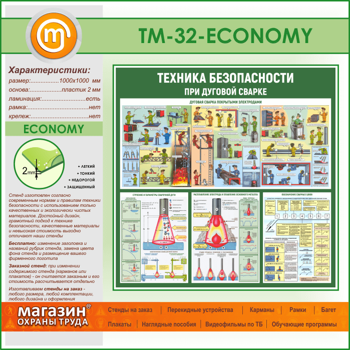 Стенд «Техника безопасности при дуговой сварке» (TM-32-ECONOMY) в Омске купить