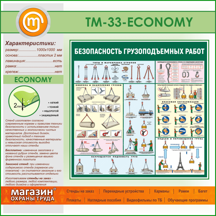 Стенд «Безопасность грузоподъемных работ» (TM-33-ECONOMY) в Омске купить