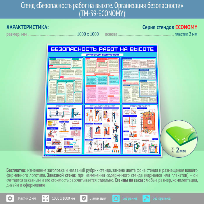 Стенд «Безопасность работ на высоте. Организация безопасности» (TM-39-ECONOMY) в Омске купить