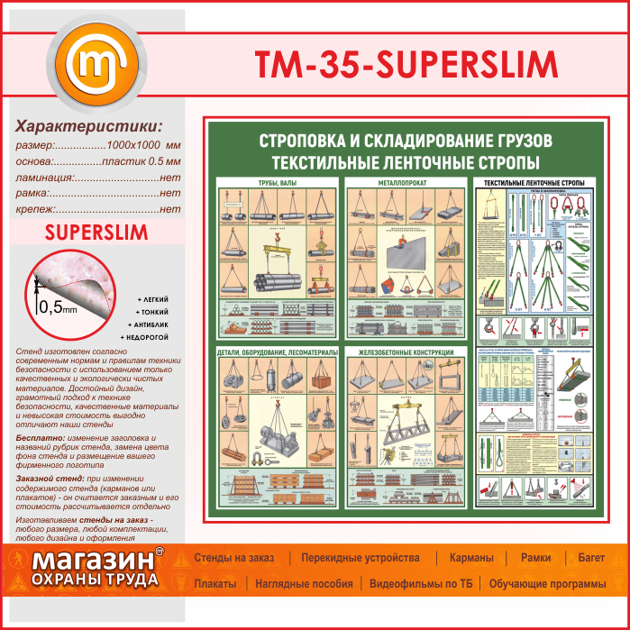 Стенд «Строповка и складирование грузов. Текстильные ленточные стропы» (TM-35-SUPERSLIM) в Омске купить
