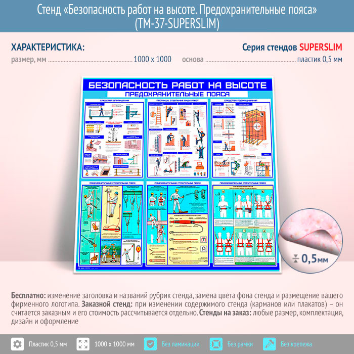 Стенд «Безопасность работ на высоте. Предохранительные пояса» (TM-37-SUPERSLIM) в Омске купить