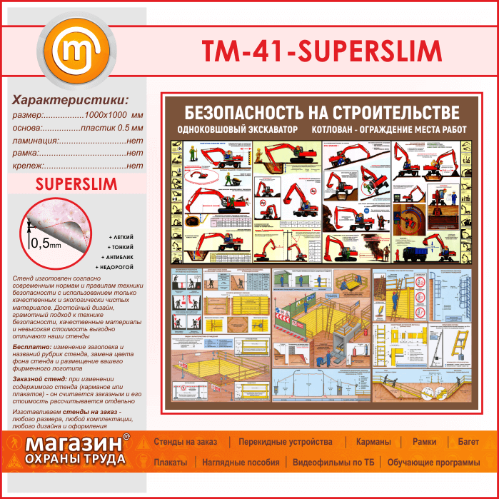 Стенд «Безопасность земляных работ. Экскаватор, котлован» (TM-41-SUPERSLIM) в Омске купить