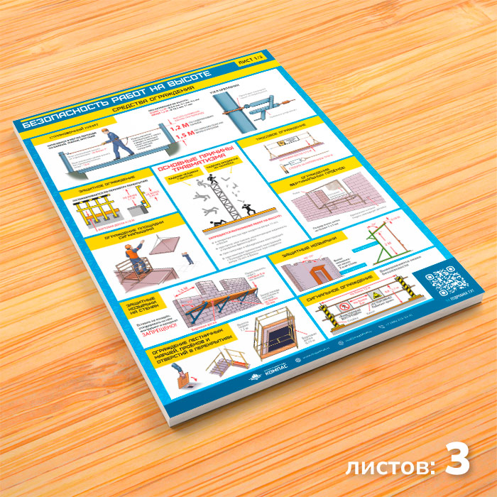 Плакаты «Безопасность работ на высоте» (М-52, ламинированная бумага, А2, 3 листа) в Омске купить