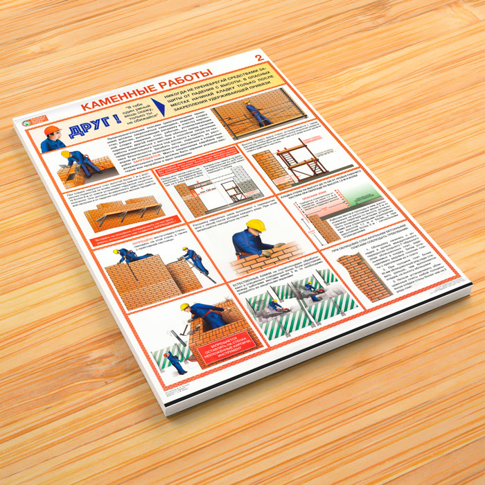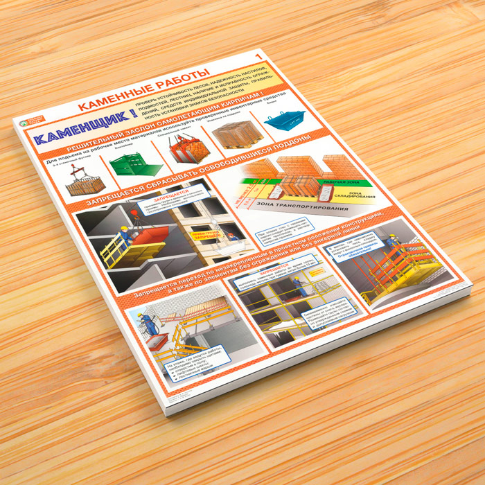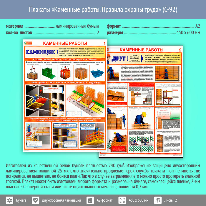 Плакаты «Каменные работы. Правила охраны труда» (С-92, ламинированная бумага, А2, 2 листа) в Омске купить