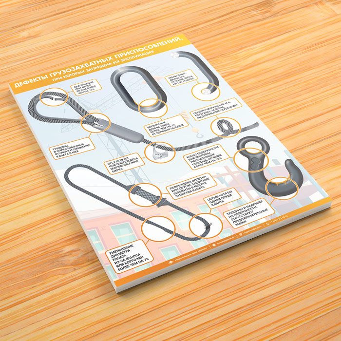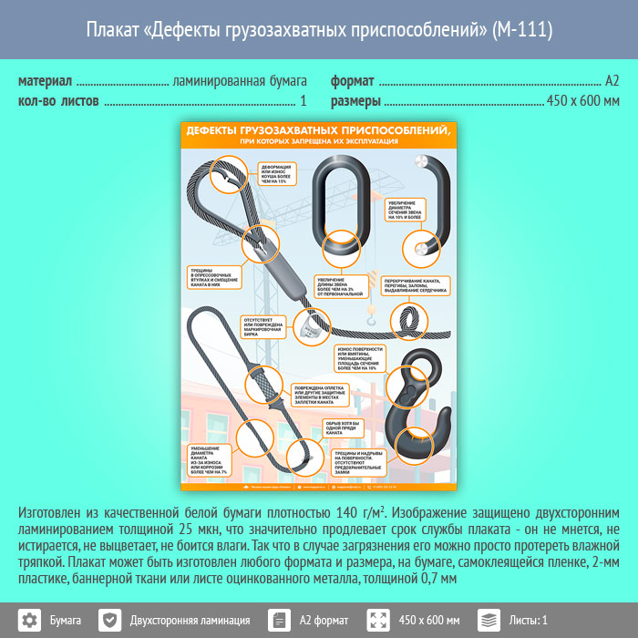 Плакат «Дефекты грузозахватных приспособлений» (М-111, ламинированная бумага, А2, 1 лист) в Омске купить
