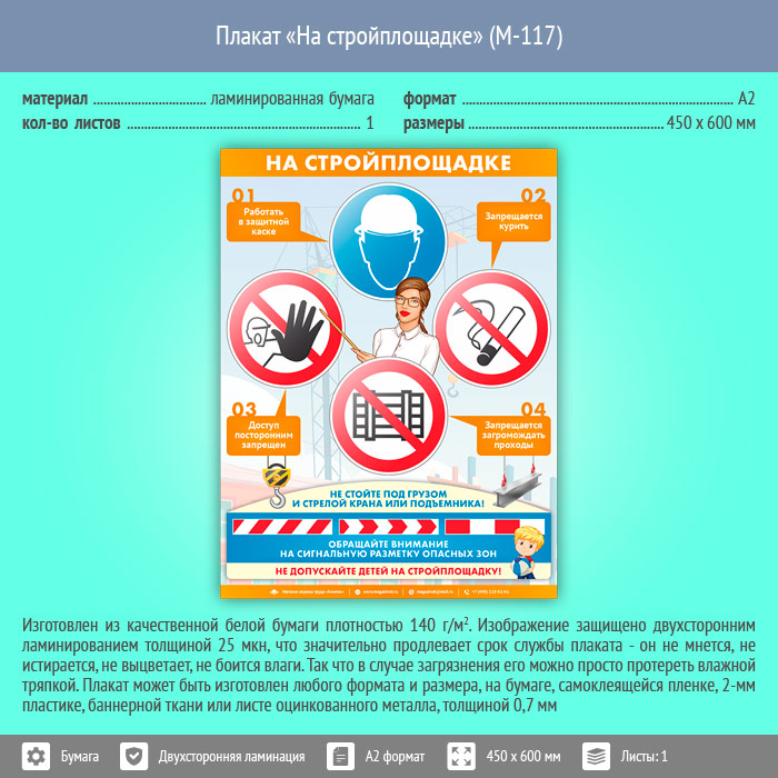 Плакат «На стройплощадке» (М-117, ламинированная бумага, А2, 1 лист) в Омске купить