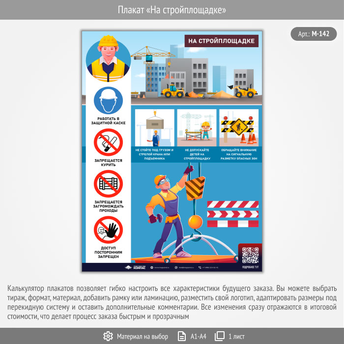 Плакат «На стройплощадке» с QR (М-142, 1 лист) в Омске купить