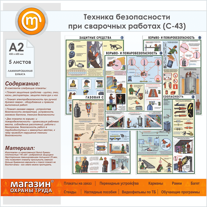 Плакаты «Техника безопасности при сварочных работах» (С-43, ламинированная бумага, А2, 5 листов) в Омске купить