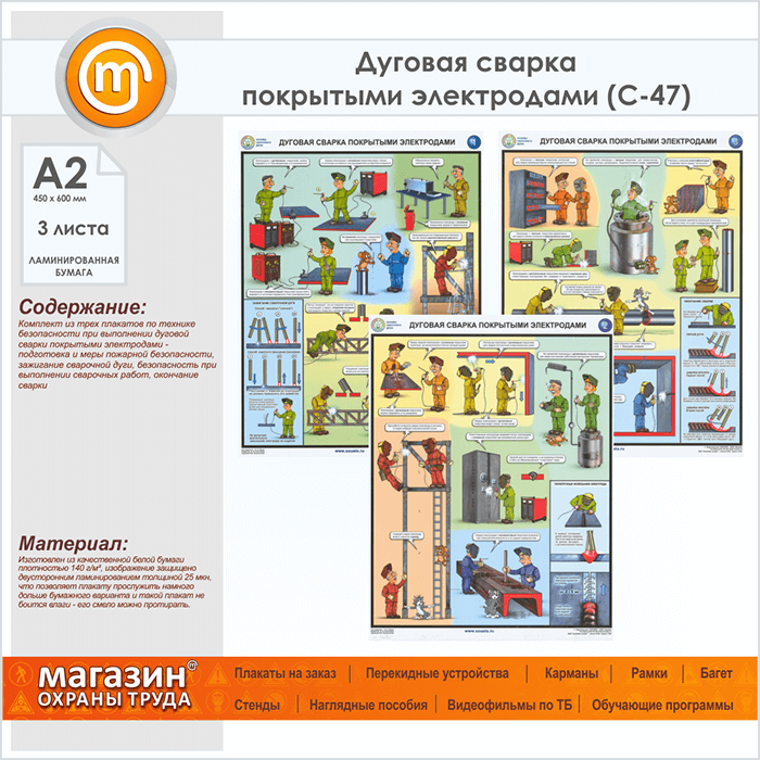 Плакаты «Дуговая сварка покрытыми электродами» (С-47, ламинированная бумага, А2, 3 листа) в Омске купить