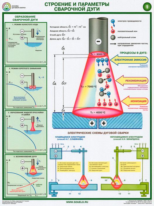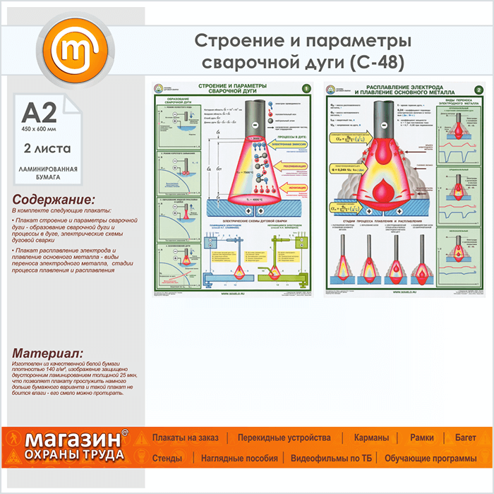 Плакаты «Строение и параметры сварочной дуги» (С-48, ламинированная бумага, А2, 2 листа) в Омске купить