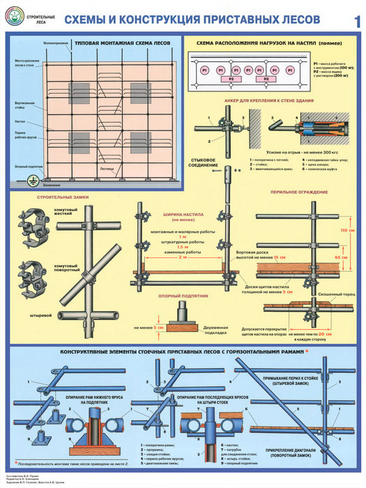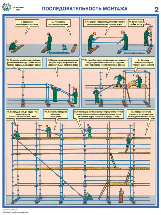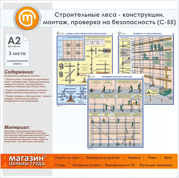 Плакаты «Строительные леса - конструкции, монтаж, проверка на безопасность» (С-55, ламинированная бумага, А2, 3 листа) в Омске купить