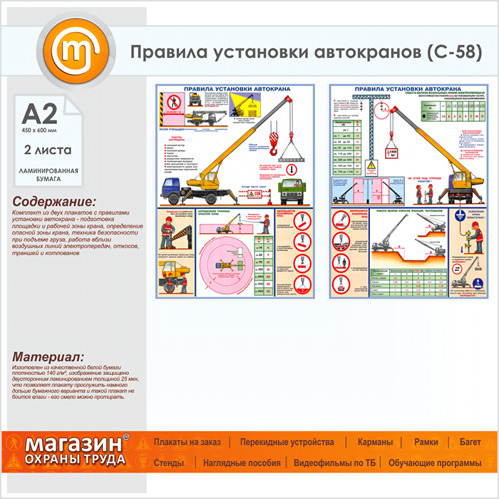 Плакаты «Правила установки автокранов» (С-58, ламинированная бумага, А2, 2 листа) в Омске купить