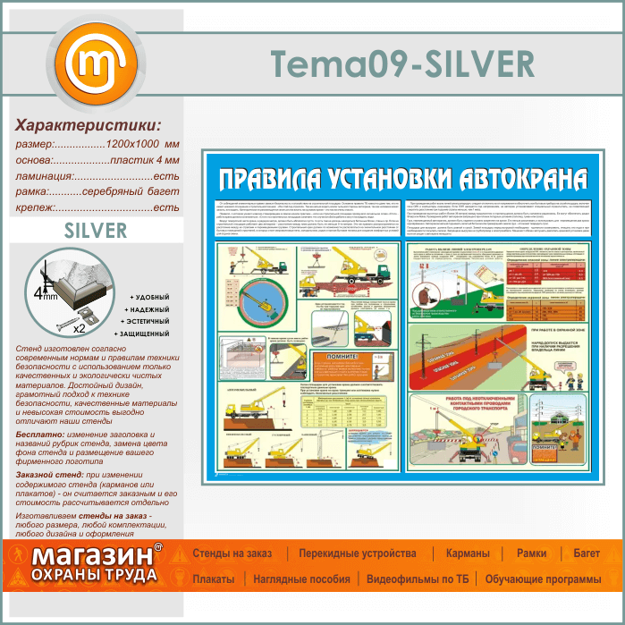 Стенд «Правила установки автокранов» (TM-09-SILVER) в Омске купить