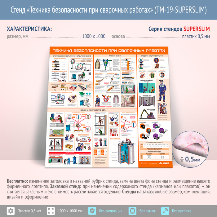 Стенд «Техника безопасности при сварочных работах» (TM-19-SUPERSLIM) в Омске купить