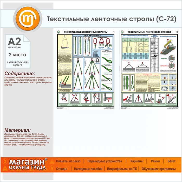 Плакаты «Текстильные ленточные стропы» (С-72, ламинированная бумага, А2, 2 листа) в Омске купить
