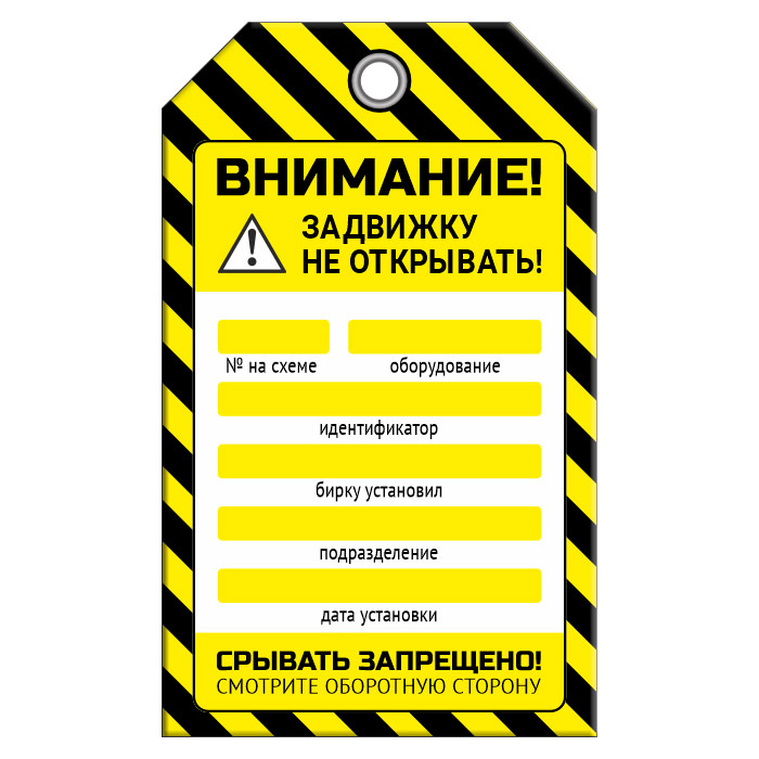 Бирка «ЗАДВИЖКУ НЕ ОТКРЫВАТЬ!» (1 шт., двусторонняя, пластик, 70х115 мм) в Омске купить