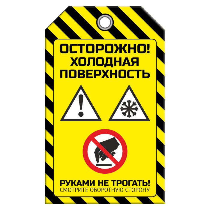Бирка «ОСТОРОЖНО! ХОЛОДНАЯ ПОВЕРХНОСТЬ» (1 шт., двусторонняя, пластик, 70х115 мм) в Омске купить