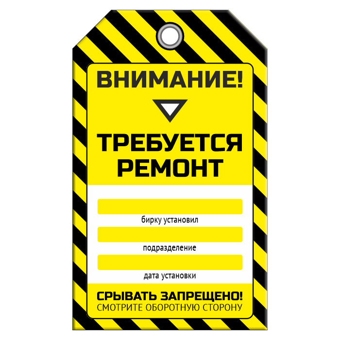 Бирка «ТРЕБУЕТСЯ РЕМОНТ!» (1 шт., двусторонняя, пластик, 70х115 мм) в Омске купить
