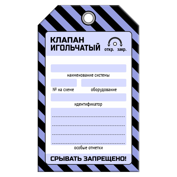 Бирка «КЛАПАН ИГОЛЬЧАТЫЙ» (1 шт., односторонняя, пластик, 70х115 мм) в Омске купить