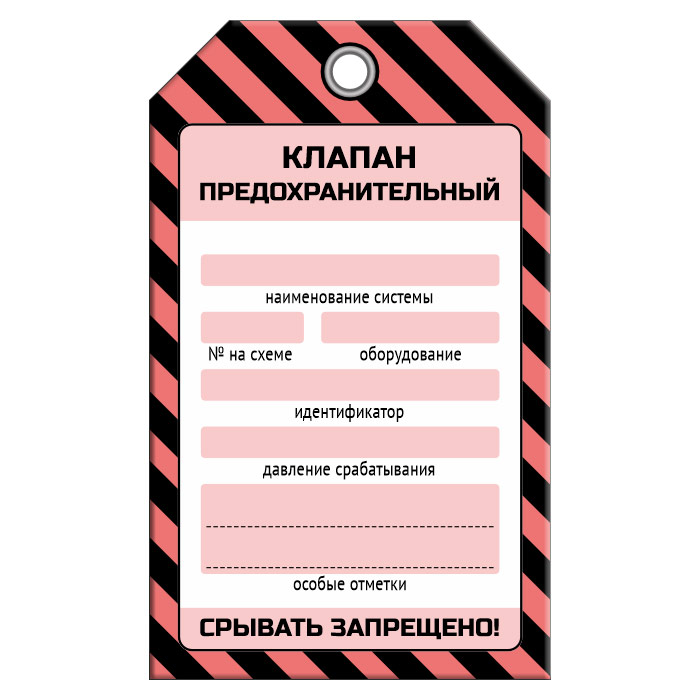 Бирка «КЛАПАН ПРЕДОХРАНИТЕЛЬНЫЙ» (1 шт., односторонняя, пластик, 70х115 мм) в Омске купить